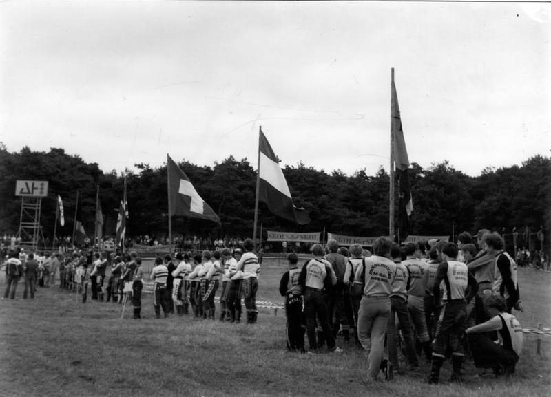 Voorstelling van de teams bij de internationale motorcrosswedstrijd georganiseerd door M.C.C. Beesel. Foto is genomen in de Walsberg.