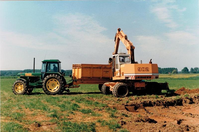De firma Reijnders bezig met het aanleggen van het nieuwe crossterrein van motorcrossclub M.C.C. Beesel aan de Rayerveldweg in Beesel.