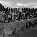Tijdens de officiële opening van de visvijver probeert burgemeester Hendrix een visje te verschalken.