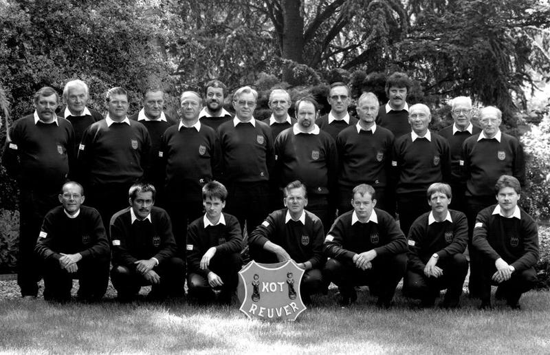 van links naar rechts. Staande: C. Derks, W. Schoolmeesters, H, Stevens, D. de Visser, J. Kusters, H. Stroeken, Graad. Beyers, Piet Midden, H. Heuts, W. Koch, Werner Landewee, Mart. v.d. Heuvel, C. v. Buggenum, J. Rooymans, P. Timmermans. Zittend: C. Peeters, Ron Völke, M. Heuts, Jeu Dewinden, Fr, Amendt, John Kuypers, Jeu Huys.