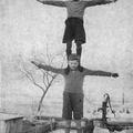 Leden van S.V. Hercules '03 tijdens het uitoefenen van hun gymnastiekkunst.