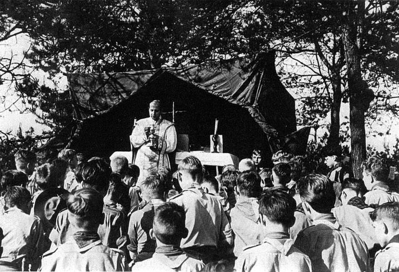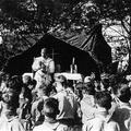 De verkennersgroep Sint Lambertus uit Reuver begin jaren vijftig op zomerkamp in Helenaveen.