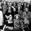 Van links naar rechts: Bovenste rij: Goertz, Truus Jenneskens, Annie Goertz, Annie Muisers, Sniekers, Tinie Janssen, Jan Goertz Middelste rij: Janssen, Truus Goertz, Truus Teunissen, Piet Weijers. Onderste rij: Lien van de Vlieger, Franssen.