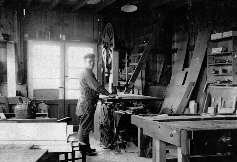 Lei Peeters in zijn timmerwerkplaats en meubelfabriek aan " De Beek ", nu Rembrandstraat, in Reuver.