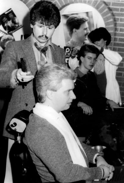 Kapper Leon Schoeren in zijn kapperszaak aan de Julianastraat in Reuver.
