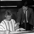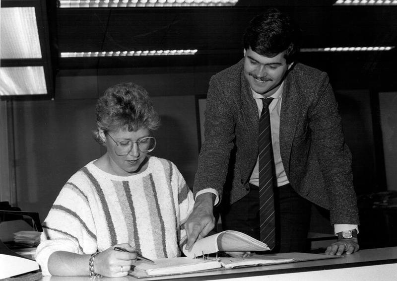 De beheerder van de ABN Amrobank aan de Pastoor Vranckenlaan met een assistente.