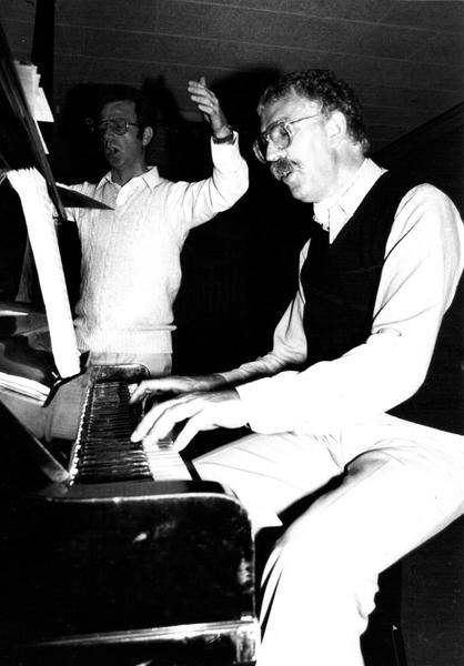 Harrie Willemsen en Huub Timmermans bij hun afscheid van Jongerenkoor Sing Along.