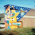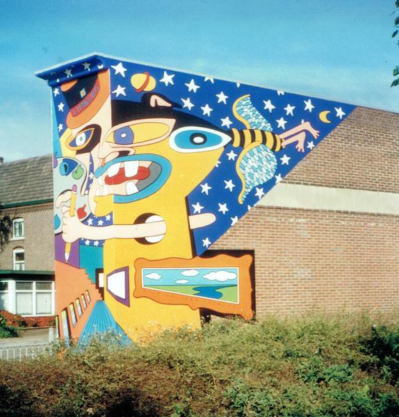Het kunstwerk op de hoek van het kunstcentrum Willem Limburg werd aangebracht door de in Reuver woonachtige kunstenaar Maurice Lenders.