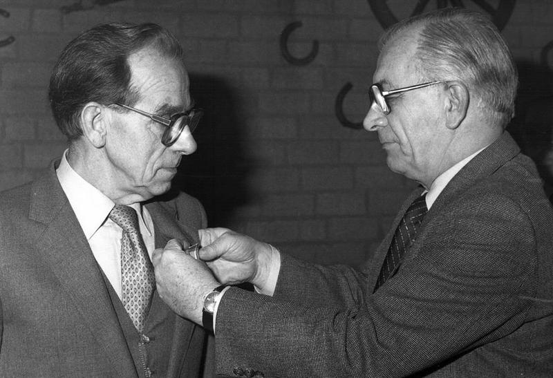 Burgemeester Hendrix feliciteert hem met de onderscheiding.