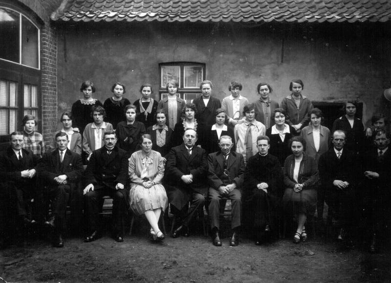 Op de foto staan van links naar rechts; 1ste rij zittend: Wullum Boonen, Frans Peeters, Lei v.d. Munckhof, mevr. Janssen - Schouren (gaf naailes en kwam uit Baarlo), dhr. Tops (Roermond), Piet Kurstjens, kapelaan Spee, Juffouw Hendriks (kookles), Sjang Goossens, Frans Geraads. 2e rij staande: Drieka Reinders, Truus Janssen, Lies v.d. Munckhof, Marie Simons, Mina Kurstjens, Truus Olders - Spee, Zus Naus, To van Hooren, Anneke Kurstjens, Ciel Engelen, Marie Boonen. 3e rij: Stien Smeets, Nel Schreurs, An Schreurs, Mien Beyers, An Coopmans, Mien Pijnenburg, An Peeters en To Dings.