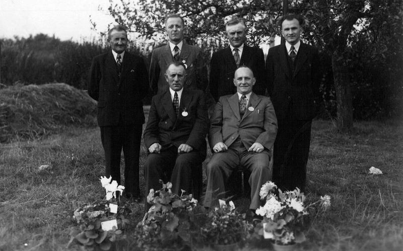 Op de foto het bestuur bij het 15-jarig bestaan in 1948. Van links naar rechts; Staande: Pierre Goossens, Pauw Pieper, Thei Hendriks, Jan van der Biesen. Zittend: Bèr Hendriks en Wim Paar (voorzitter en eigenaar van café Midden Limburg).