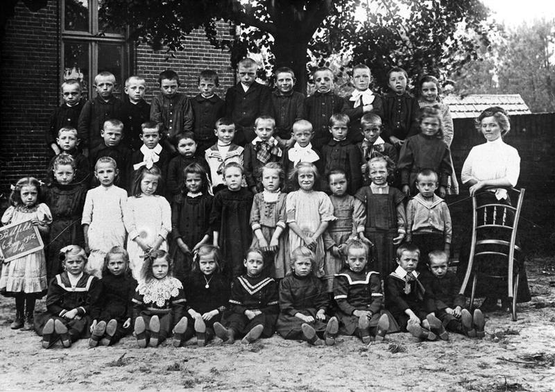 Groepsfoto van een klas van de openbare lagere school uit Belfeld in 1912.