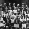Van links naar rechts, 1ste rij: B. Derks, H.Derks, Bèrke Boots, Jeu Boots, Piet Deenen, Graat Deenen, Jan Derks, Piet Pieper, Sjeng Pieper, Drees Derks. 2de rij: Thei Beyers, Jan Derks, L. Boots, Jan Hoezen, Herm Derks, Thei Derks, Hen Wetzels, Jan Wetzels. 3de rij: meester Bongaerts, Herm Beyers, Wim Beyers, Jan Hoezen, Thei Boots, Herm Hoezen, Thei Hoezen, Pierre Derks, meester Verlaek. 4de rij: Wieke Hendriksen, Herm Douben, Cor Boots, Jan Boots, Piet Lensen, Graat Hoezen, Thei Beyers, meester Ernst. 5de rij: juffrouw Peeters, Ben Janzen, Bert Janzen, Bèr Seuren, Sjeng Bolten, Jan Mensen, Wiel Hoezen, Jan Korsten.