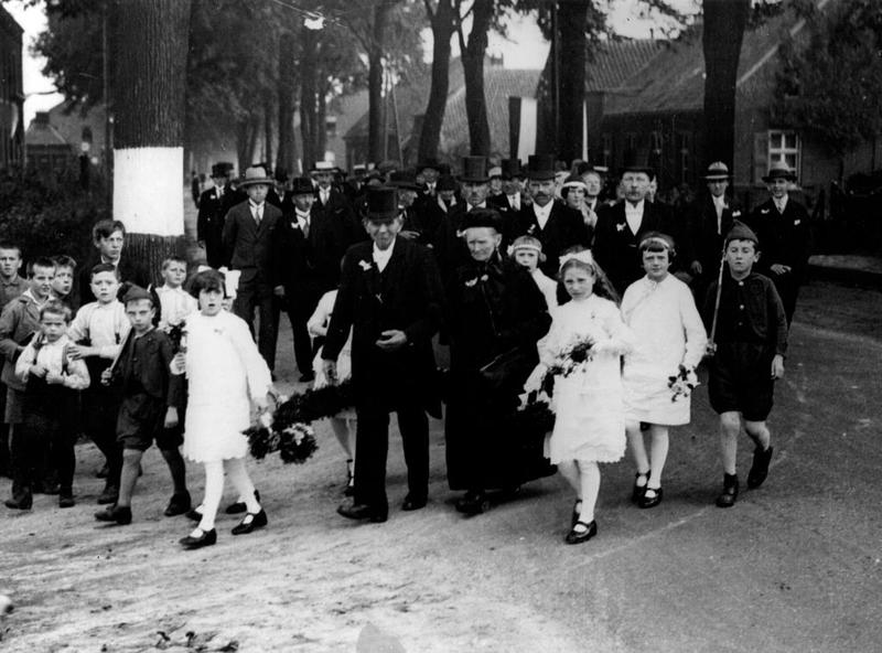 Het echtpaar Piet Ernst en zijn vrouw Ernst - Stevens van de Tegelseweg vierde hun 60-jarig huwelijk in 1929 wat in die tijd een zeldzaamheid was. Het bruidspaar werd door de hele buurt naar de kerk begeleid en natuurlijk ontbraken ook de bruidjes niet.
