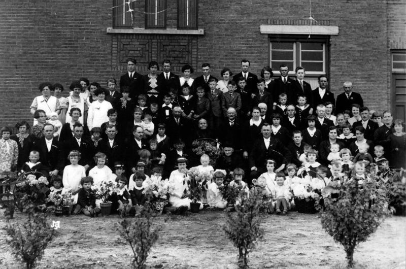 Gouden bruiloft van Ties Simons en zijn vrouw met o.a. Henk Simons, Frans Simons en zijn vrouw Truus, tante Grit, tante Jo.