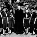 Op de foto staan van links naar rechts: Trinet Olders, Gon Douben, Trees Boonen, pastoor van de Venne, Wies Janssen, An Jetten en Mia v.d. Munckhof.