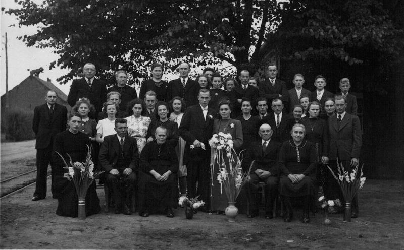 van links naar rechts: zittend : 1 Frans Rutten, 2 NN, 3 NN, 4 NN, 5 Franssen, 6 Braus Franssen, 7 Franssen. 1e rij: 1 Nn, 2 NN, 3 Mia Franssen - van Wylick, 4 Frits Franssen, 5 NN....