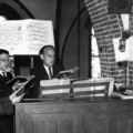 Een deel van het kerkkoor bestaande uit (v.l.n.r.) 1 H. Hemels, 2 Thei Vullers, 3 Pierre Pubben (koster) 4 Albert van de Kleienberg.