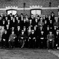 Foto van het personeel van Janssen - Willemsen gemaakt bij het 25 jarig jubileum van de heer Valkenburg als machinist bij Janssen - Willemsen.