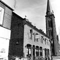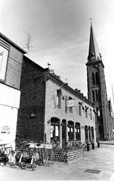 Café-restaurant Ronkenstein in Reuver met op de achtergrond de Lambertuskerk.