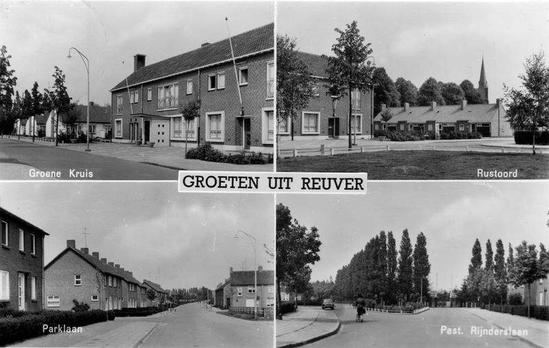 Prentbriefkaart van diverse straten in Reuver.