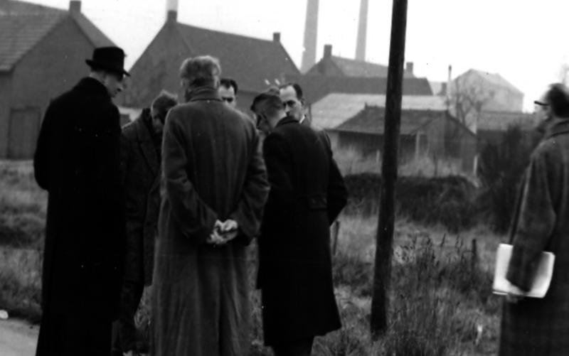 Bouwvergadering op het bouwterrein van de Fatimakerk.