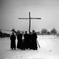 Enkele geestelijken laten zich fotograferen bij het kruis waar de Fatimakerk komt te staan.