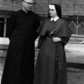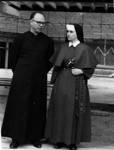 Pater Wiel Koch en zuster Annie Franssen op bezoek bij de in aanbouw zijnde Fatimakerk.