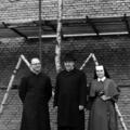 Pater Wiel Koch, pater Weiss en zuster Annie Franssen poseren samen voor de in aanbouw zijnde Fatimakerk.