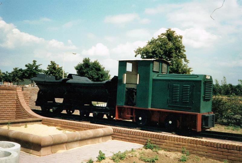 De tuf staat opgesteld bij Brickburgers op de Sint Jozefweg in Offenbeek als herinnering aan het verleden.