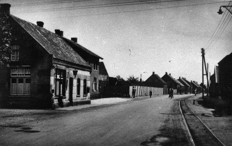 De Keulseweg in Offenbeek met links Killaars Sjaek (nu de Paersstjal) en rechts de smalspoorlijn van de tuf naar de Icksberg.