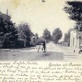 Rechts is de zijgevel van het oude gemeentehuis en daar achter de woning van Lambert v/d Velden (Victoria-brouweriji). Links zien we het huis van pastoor Wolters (later villa van Paquay). Op de bank voor het huis rechts zit Treesje Vogels.