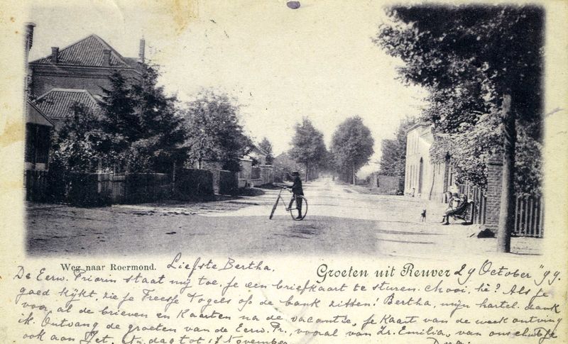 Prentbriefkaart van de Rijksweg in Reuver.