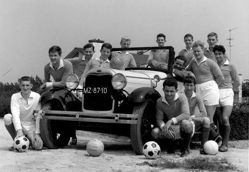 Van links naar rechts: Piet Didden, Gommans, Ton Smeets, Jan Pollen, Harrie Wassen, Pup Smeets, Thei Janssen (vooraan), Coen Gommans, Jan Rutten, Luc Steeghs, Wim Hendriks, Karel aan de Boom.