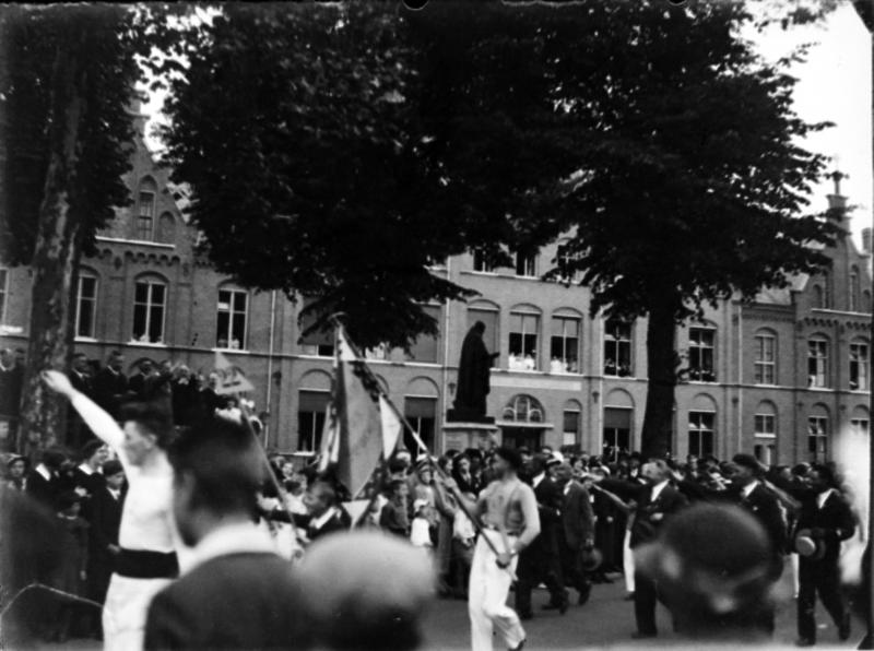 De turners van Hercules geven een eresaluut tijdens een grote optocht in 1934 ter ere van het bondsfeest.