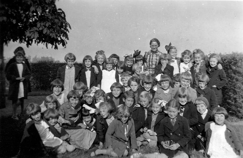 Groepsfoto van Het Katholieke Jonge Meisjes gilde (K.J.M.) .