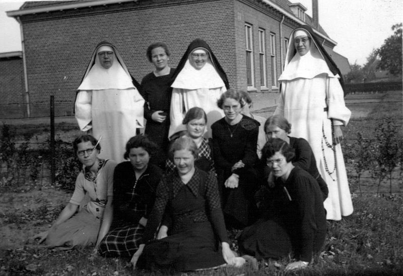 Van links naar rechts; 1ste rij (zittend en hurkend): 1 Nel Rijnders, 2 Truus Verstappen, 3 NN, 4 Grada Teeuwen, 5 NN, 6 NN, 7 NN staande: NN