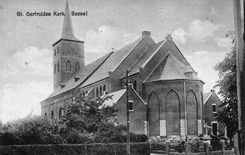 Prentbriefkaart met hierop de Sint Gertrudis kerk in Beesel.