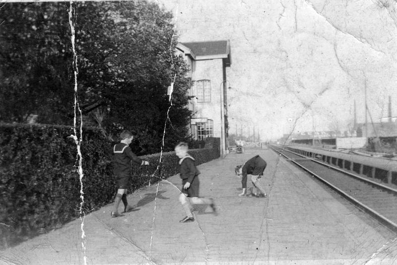 Joep Vossen (links) , René Vroemen en NN zijn aan het spelen op het station in Reuver.