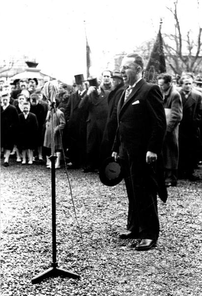 Jac Laumans spreekt namens het kerkbestuur en als president van de harmonie de pastoor toe.
