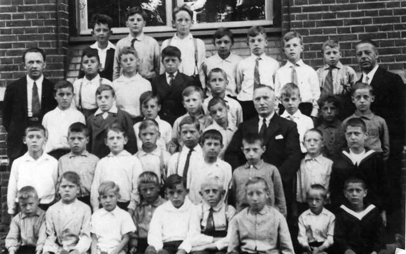 Klassenfoto van klas 5 uit 1934. Van links naar rechts: