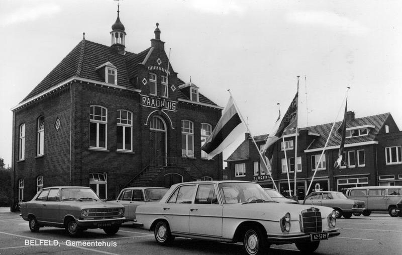 Prentbriefkaart met hierop het oude gemeentehuis in Belfeld.