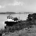 Uitzicht op de Maas met aan de wal de boot van de Parlevinker in Belfeld.