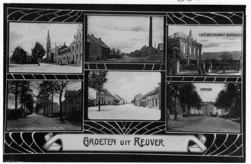 Prentbriefkaart met het H. Hart klooster en de kerk, de Keulseweg, café restaurant Buitenlust, de Rijksweg en de Stationstraat.