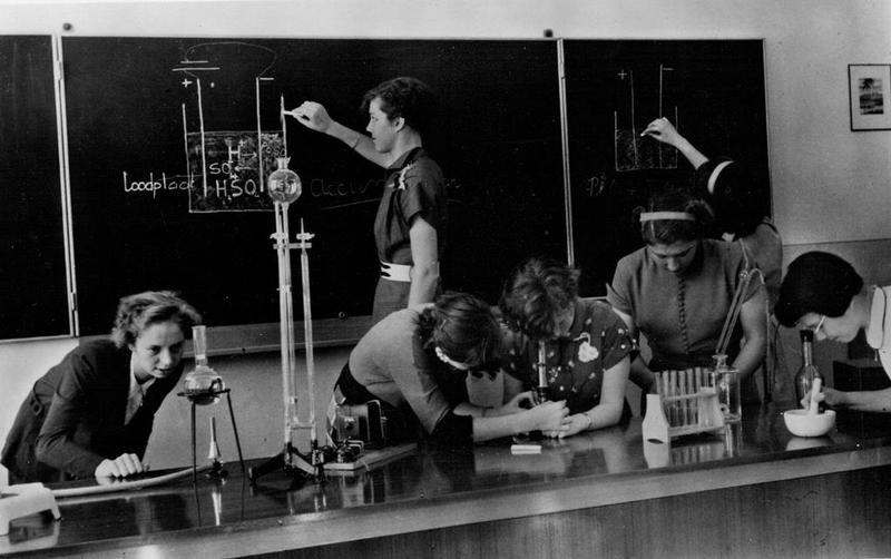 Scheikundeles in de Meisjes Mavo Pro Vita.
