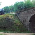 Een oude trein rijdt over het spoor bij het viaduct aan de Onderstehofweg tijdens de open monumententdag in 2008