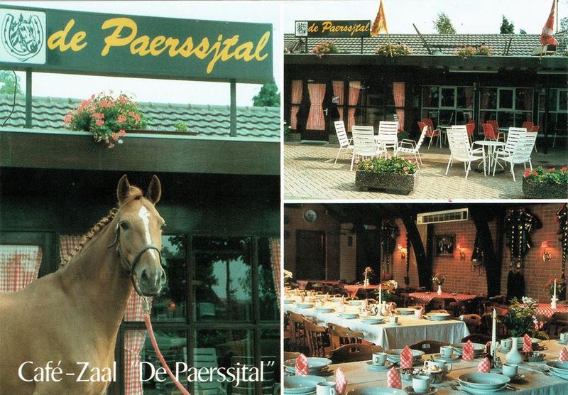 Prentbriefkaart van café - zaal "de Paerssjtal".