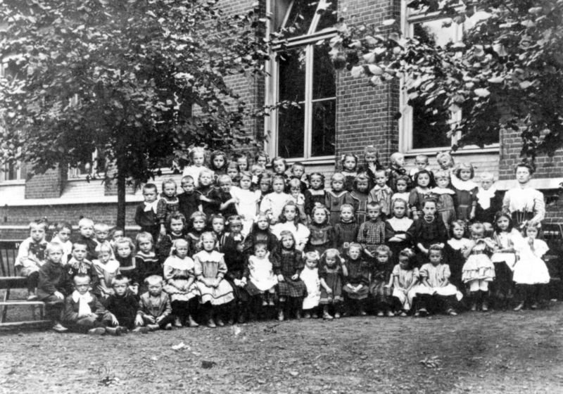 Klassen van de kleuter en lagereschool van het klooster uit 1915 .