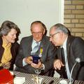Afscheid R.E.C. Hover, gemeentesecretaris op 29 december 1982 in het gemeenschapshuis De schakel. Burg. Hendrix heeft de zilveren legpenning uitgereikt aan secretaris Hover.