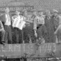 Kermis 1943. Onderduikers tijdens W.O. II in Reuver bij café Janssen aan de Kerk.